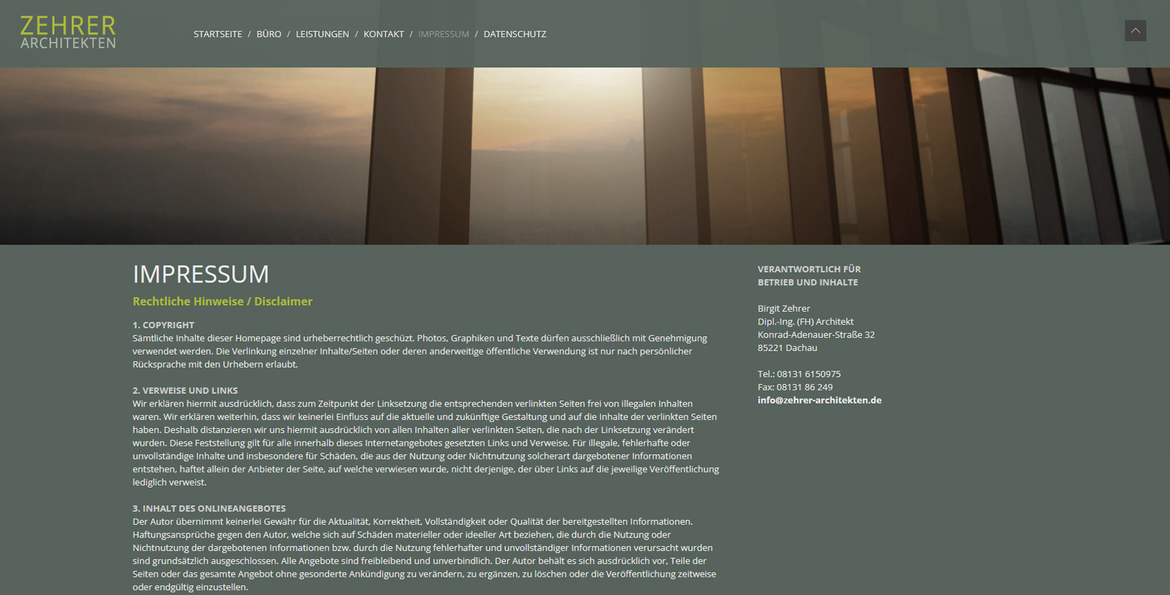 Zehrer Architekten ist ein etabliertes Architekturbüro aus Dachau, das für moderne, funktionale und ästhetisch anspruchsvolle Architektur steht. Das Team realisiert Projekte im Wohnungsbau, Gewerbebau und bei öffentlichen Gebäuden - stets mit einem klaren Blick für Nachhaltigkeit, Raumqualität und Wirtschaftlichkeit.Die neue Website präsentiert das Büro als erfahrenen Partner für ganzheitliche Planung und Umsetzung. Besucher finden eine Auswahl aktueller Projekte, Informationen zu Leistungsphasen, Wettbewerben und zum Büroprofil. Ziel war es, die architektonische Handschrift und die Vielseitigkeit der realisierten Bauprojekte digital sichtbar zu machen. Das Design der Website ist reduziert, großzügig und bildstark aufgebaut. Großformatige Projektbilder, klare Typografie und eine intuitive Navigation schaffen ein ruhiges, professionelles Nutzererlebnis, das den Stil des Büros perfekt widerspiegelt.