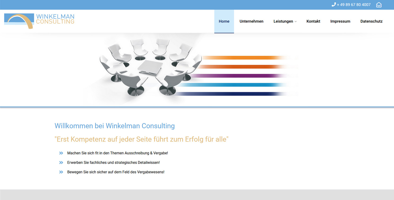 Winkelman Consulting unterstützt Unternehmen bei strategischen Fragen, Organisationsentwicklung und Veränderungsprozessen. Der Beratungsansatz ist klar, strukturiert und lösungsorientiert, mit dem Ziel, Unternehmen nachhaltiger, effizienter und zukunftsfähiger zu gestalten.Die neue Website präsentiert das Beratungsunternehmen modern und seriös, mit Fokus auf Leistungen, Methoden und die persönliche Expertise. Besucher finden schnell Zugang zu Themen wie Strategieentwicklung, Transformation und Managementberatung. Ziel war es, einen professionellen digitalen Auftritt zu schaffen, der Kompetenz und Klarheit vermittelt und die Kontaktaufnahme erleichtert. Das Design ist reduziert, elegant und businessorientiert aufgebaut. Klare Typografie, strukturierte Inhalte und eine mobil optimierte Darstellung sorgen für ein professionelles Nutzererlebnis, das zu einer modernen Beratungsmarke passt.