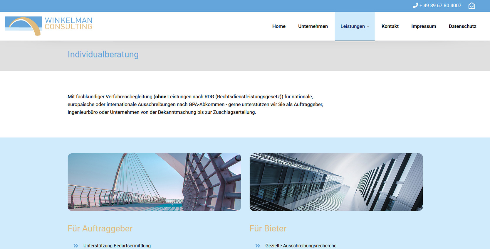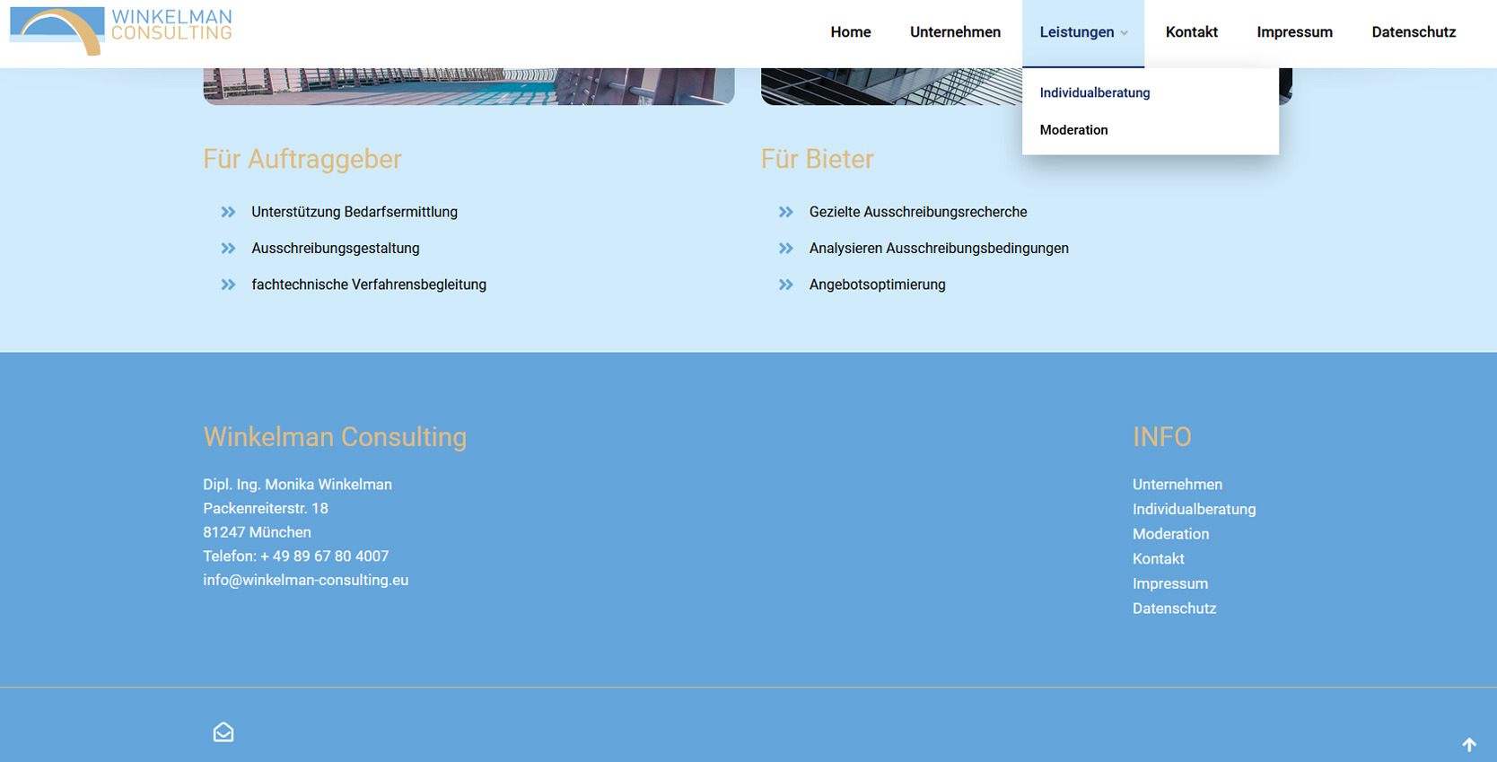 - Übersichtliche Darstellung von Leistungen, Methoden und Unternehmensprofil