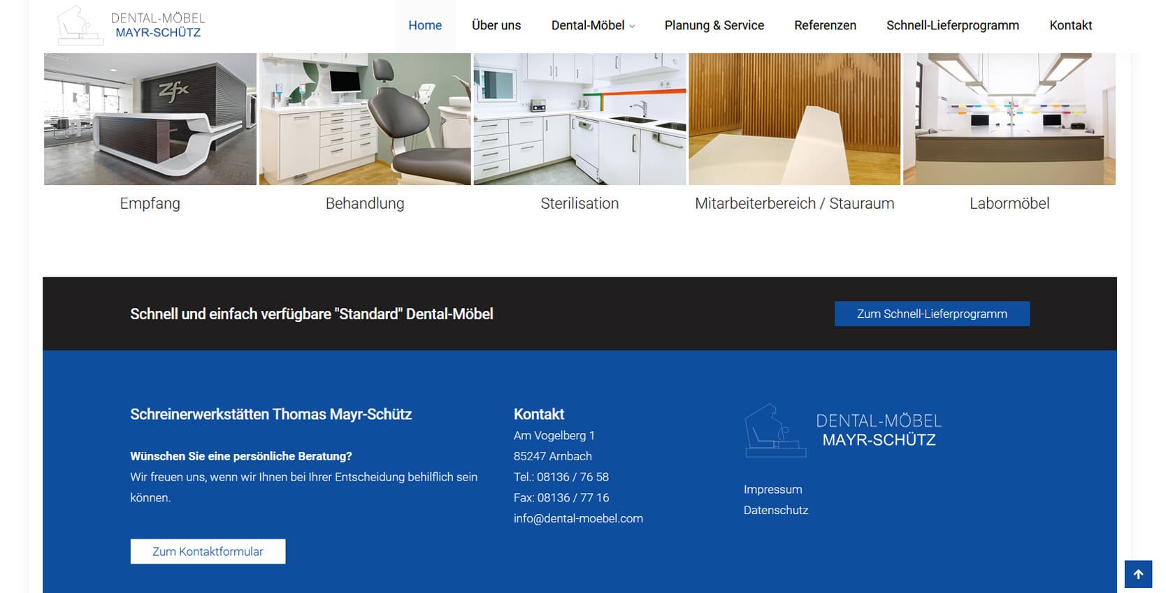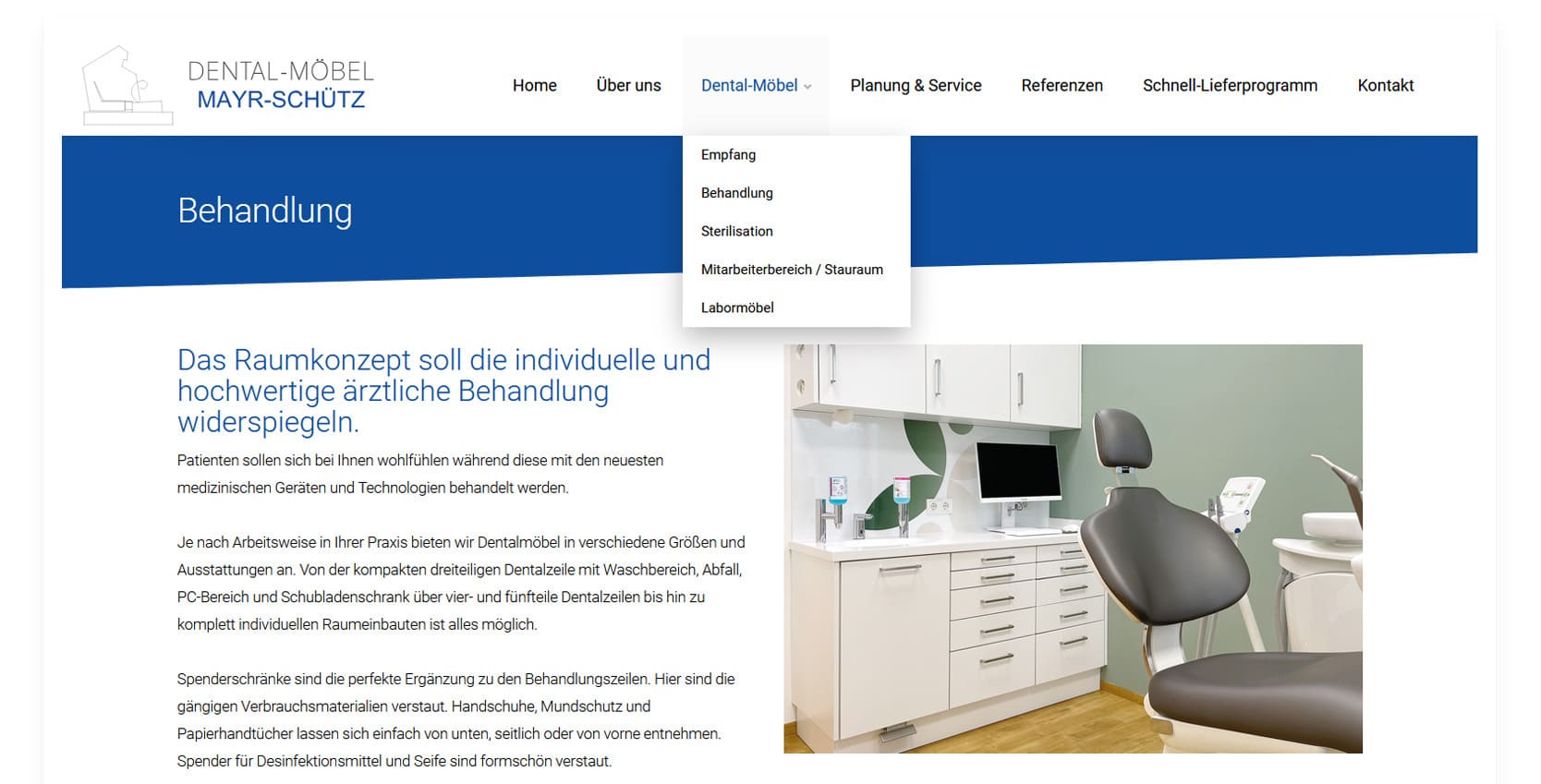 Dental Möbel entwickelt hochwertige Einrichtungslösungen für Zahnarztpraxen, Dentallabore und Kliniken. Das Unternehmen aus Arnbach steht für funktionales Design, langlebige Materialien und maßgefertigte Konzepte, die den Alltag in der Praxis effizienter und ergonomischer gestalten.Die neue Website präsentiert Dental Möbel als Spezialisten für Planung, Fertigung und Montage von Praxiseinrichtungen. Besucher finden Informationen zu Möbelserien, Materialien, Designvarianten und individuellen Lösungen. Ziel war es, das Zusammenspiel von Funktion, Design und Qualität digital darzustellen und die Marke als zuverlässigen Partner im Dentalbereich zu positionieren. Das Design ist klar, modern und technisch strukturiert. Große Produktbilder, strukturierte Inhalte und eine übersichtliche Navigation ermöglichen eine schnelle Orientierung - sowohl für Zahntechniker als auch Praxisplaner.