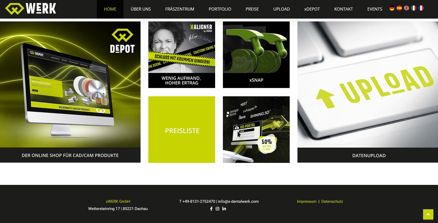 Das X-Dentalwerk ist ein hochmodernes Fräszentrum für Zahntechnik und bietet Laboren in ganz Deutschland digitale Fertigung auf höchstem Niveau. Mit modernster CAD/CAM-Technologie entstehen präzise Zahnersatzlösungen - von Kronen und Brücken bis zu Implantatversorgungen.Die neue Website stellt das Fertigungszentrum, die Leistungen und das breite Portfolio an Materialien und Lösungen übersichtlich dar. Besonderes Augenmerk liegt auf der klaren Struktur und den Services für Dentallabore, wie Online-Upload und Preislisten. Ziel war es, Kompetenz, Präzision und Geschwindigkeit digital zu transportieren. Ergänzt wird die Seite durch ein internationales Angebot mit mehreren Sprachversionen sowie den direkten Bezug zu Partnerprojekten der xWERK-Gruppe.