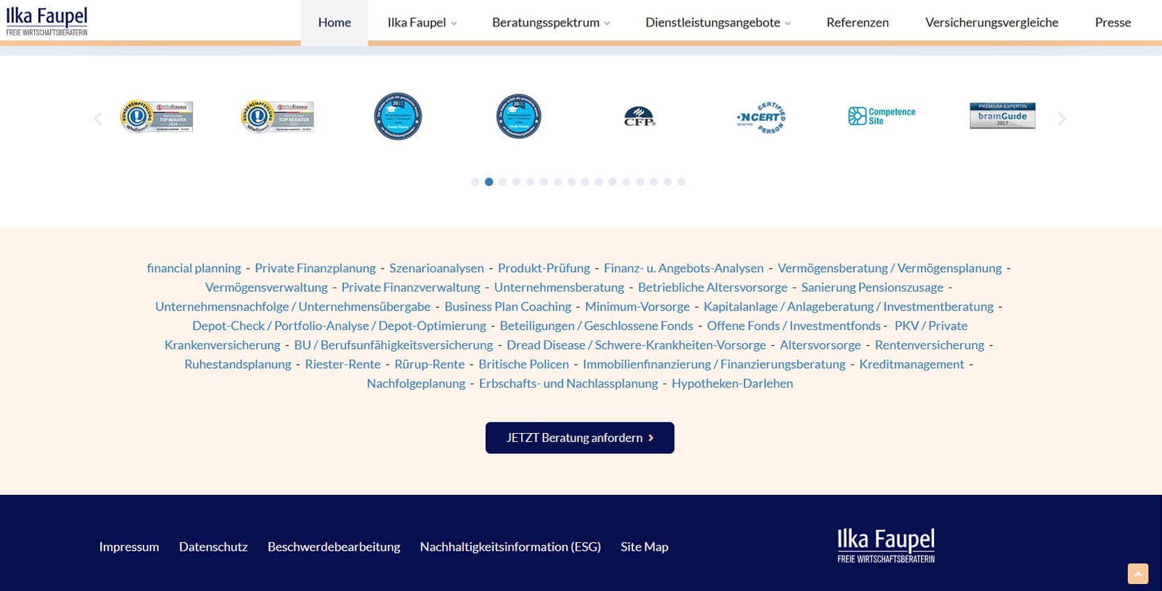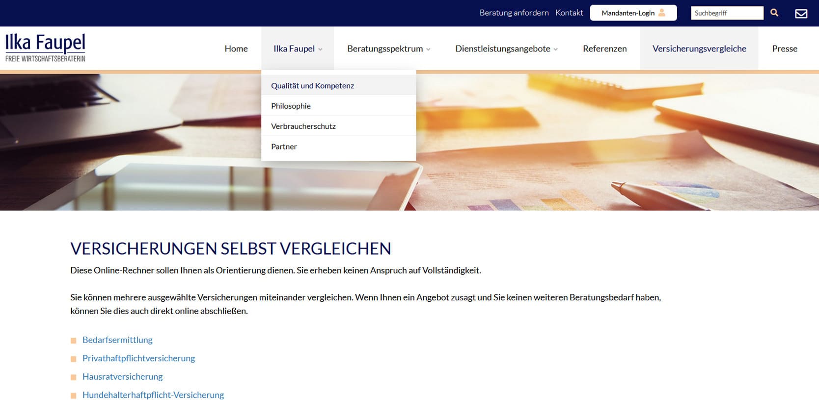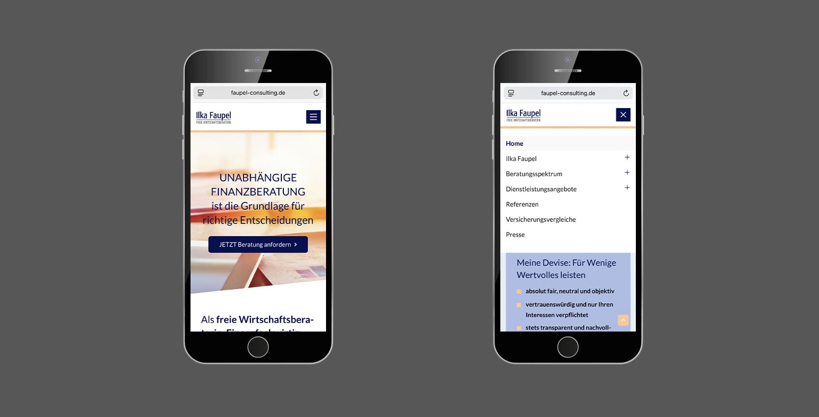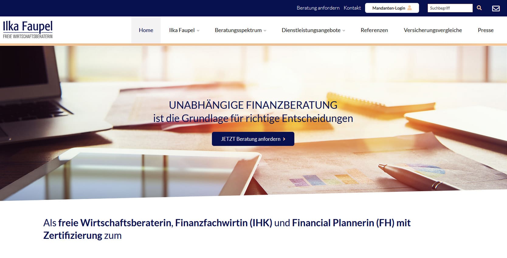 Faupel Consulting ist ein unabhängiges Beratungsunternehmen aus München, das Privatkunden, Unternehmen und Selbstständige in allen Fragen rund um Finanzen, Vorsorge und Vermögensaufbau begleitet. Die Beratung ist ganzheitlich, transparent und individuell - mit Fokus auf nachhaltige Strategien und langfristige Werte.Die neue Website präsentiert das Unternehmen als modernen, seriösen Ansprechpartner für Finanz- und Investmentthemen. Besucher finden Informationen zu Leistungen, Beratungsansätzen und zu aktuellen Entwicklungen in der Finanzwelt. Ziel war es, eine klare, vertrauensvolle digitale Präsenz zu schaffen, die sowohl Kompetenz als auch Persönlichkeit vermittelt. Das Design ist aufgeräumt, elegant und hochwertig gestaltet. Eine strukturierte Navigation, ruhige Farbwelt und mobil optimierte Darstellung schaffen ein professionelles Nutzererlebnis - passend zum Beratungsanspruch von Faupel Consulting.