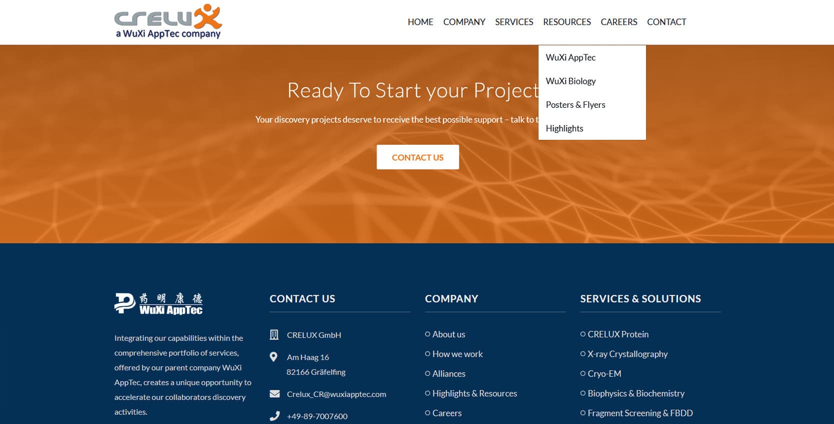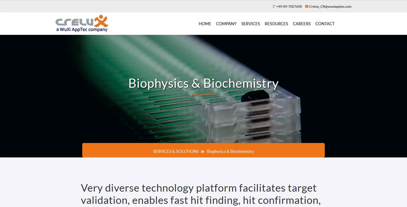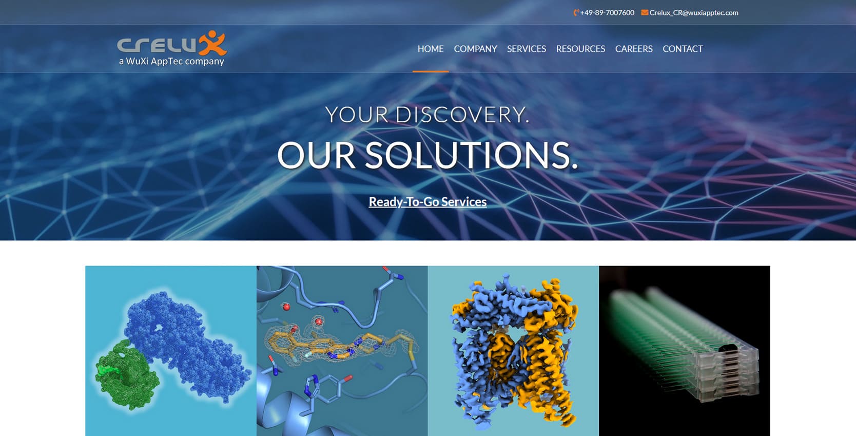 CRELUX ist Teil von WuXi AppTec und zählt weltweit zu den führenden Anbietern im Bereich Drug Discovery. Mit Sitz in Gräfelfing bei München unterstützt das Unternehmen seit fast 20 Jahren die Pharma- und Biotech-Industrie mit hochspezialisierten Services in Proteinproduktion, Strukturbiologie, Biophysik, Screening und Medizinalchemie.Die neue Website präsentiert das umfangreiche Portfolio klar strukturiert und macht die wissenschaftliche Exzellenz des Unternehmens sichtbar. Ziel war es, die komplexen Themen der Forschung für internationale Kunden übersichtlich darzustellen und gleichzeitig die Innovationskraft von CRELUX zu transportieren. Durch die Verbindung von moderner Gestaltung und präziser Informationsarchitektur ist eine Website entstanden, die Vertrauen schafft und die Position von CRELUX als globalem Partner in der Arzneimittelentwicklung unterstreicht.