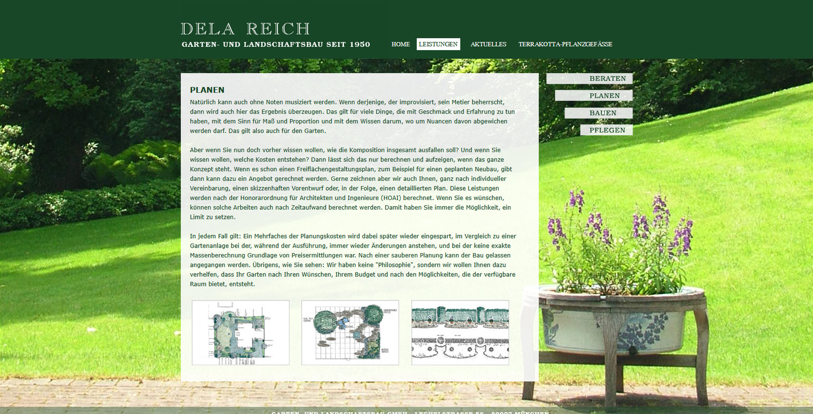 Dela Reich Gartenbau ist ein moderner Fachbetrieb für Garten- und Landschaftsbau in München. Das Unternehmen plant, gestaltet und pflegt private Gärten sowie Außenanlagen und verbindet handwerkliche Qualität mit einem feinen Gespür für Gestaltung, Materialien und Pflanzen. Der Fokus liegt auf individuellen Lösungen, die langfristig Freude machen.Die neue Website präsentiert das Leistungsspektrum klar und übersichtlich. Besucher finden Informationen zu Gartengestaltung, Pflege, Pflanzkonzepten und realisierten Projekten. Ziel war es, die handwerkliche Kompetenz und den gestalterischen Anspruch digital sichtbar zu machen und eine einfache Kontaktaufnahme zu ermöglichen. Das Design ist natürlich, ruhig und bildstark aufgebaut. Großflächige Projektbilder, klare Texte und eine intuitive Navigation sorgen für ein angenehmes Nutzererlebnis. Die Seite ist vollständig mobil optimiert und eignet sich ideal zur Inspiration und schnellen Orientierung.