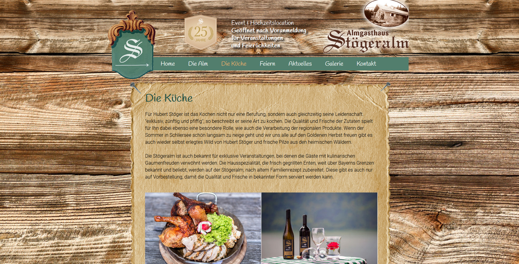 Die Stögeralm ist eine traditionsreiche Alm und Gastronomie am Schliersee und steht für regionale Küche, gemütliche Atmosphäre und echte bayerische Gastlichkeit. Wanderer, Ausflügler und Einheimische genießen hier klassische Schmankerl, hausgemachte Spezialitäten und den Blick auf die umliegende Berglandschaft.Die neue Website präsentiert die Stögeralm authentisch, einladend und übersichtlich. Besucher finden Informationen zu Speisekarte, Öffnungszeiten, Lage und Veranstaltungen. Ziel war es, das Almgefühl digital zu transportieren und Gästen eine schnelle Orientierung zu bieten - vom ersten Eindruck bis zur Anfahrt. Das Design ist warm, rustikal und bildstark gestaltet. Großflächige Fotos, klare Texte und eine einfache Navigation sorgen für ein positives Nutzererlebnis. Die Seite ist vollständig mobil optimiert und eignet sich ideal für Gäste, die unterwegs nach Einkehrmöglichkeiten suchen.