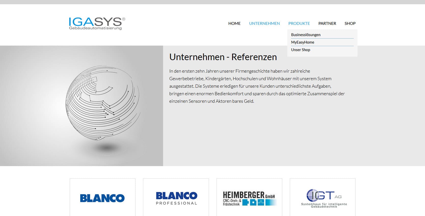 IGASYS ist ein innovatives Unternehmen für intelligente Gebäudeautomation, Energieeffizienz und technische Anlagensteuerung mit Sitz in Eppingen. Das Unternehmen entwickelt maßgeschneiderte Lösungen für Industrie, Gewerbe und öffentliche Einrichtungen - von der Planung bis zur Umsetzung komplexer Gebäudetechniksysteme.Die neue Website präsentiert IGASYS als kompetenten Partner für moderne Gebäudetechnik und Automation. Besucher finden Informationen zu Leistungen, Projekten, Technologien und Partnerlösungen. Ziel war es, die technische Expertise und den innovativen Charakter des Unternehmens digital zu vermitteln und gleichzeitig eine klare Struktur für Kunden und Planer zu schaffen. Das Design ist technisch modern, übersichtlich und nutzerfreundlich aufgebaut. Klare Linien, strukturierte Inhalte und eine schnelle Navigation sorgen für ein professionelles Erscheinungsbild auf allen Endgeräten.