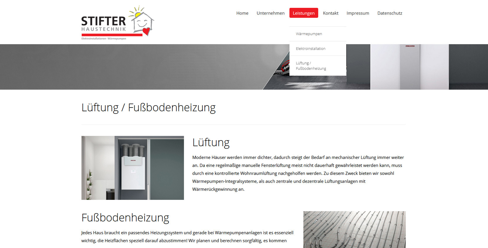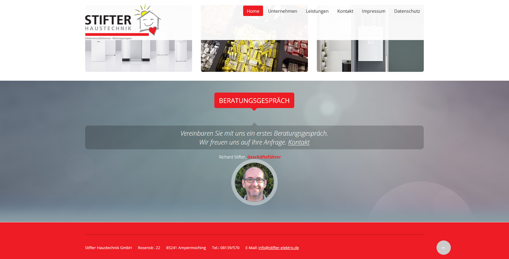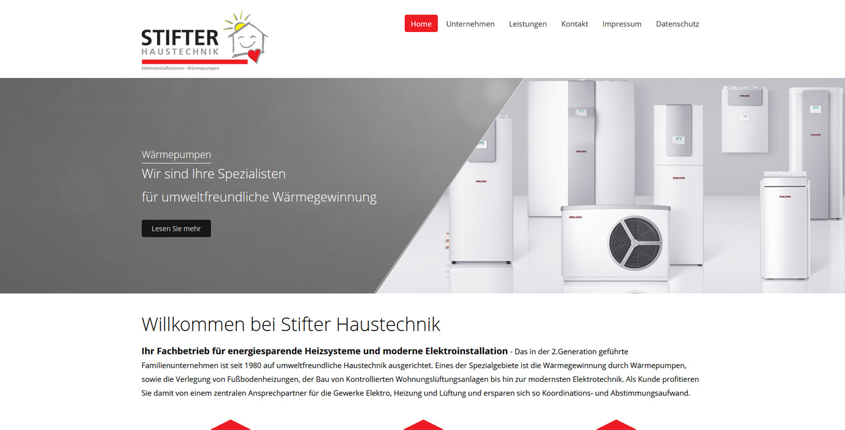 Stifter Elektro ist ein regionaler Fachbetrieb für Elektroinstallation und moderne Haustechnik in Ampermoching. Das Unternehmen realisiert Projekte in den Bereichen Elektroinstallation, Beleuchtung, Gebäudetechnik und Smart Home. Zuverlässigkeit, saubere Ausführung und persönliche Beratung stehen dabei im Mittelpunkt.Die neue Website präsentiert Stifter Elektro klar, modern und praxisnah. Besucher finden Informationen zu Leistungen, Einsatzbereichen und Kontaktmöglichkeiten. Ziel war es, die technische Kompetenz und den handwerklichen Anspruch digital sichtbar zu machen und eine einfache Kontaktaufnahme zu ermöglichen. Das Design ist technisch klar und übersichtlich aufgebaut. Strukturierte Inhalte, aussagekräftige Bilder und eine mobil optimierte Darstellung sorgen für ein professionelles Nutzererlebnis auf allen Endgeräten.