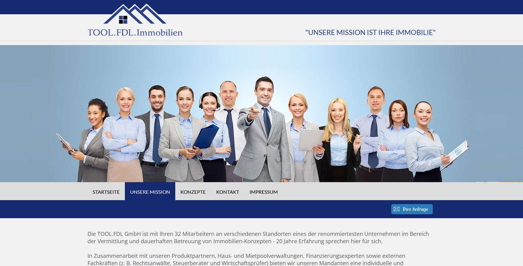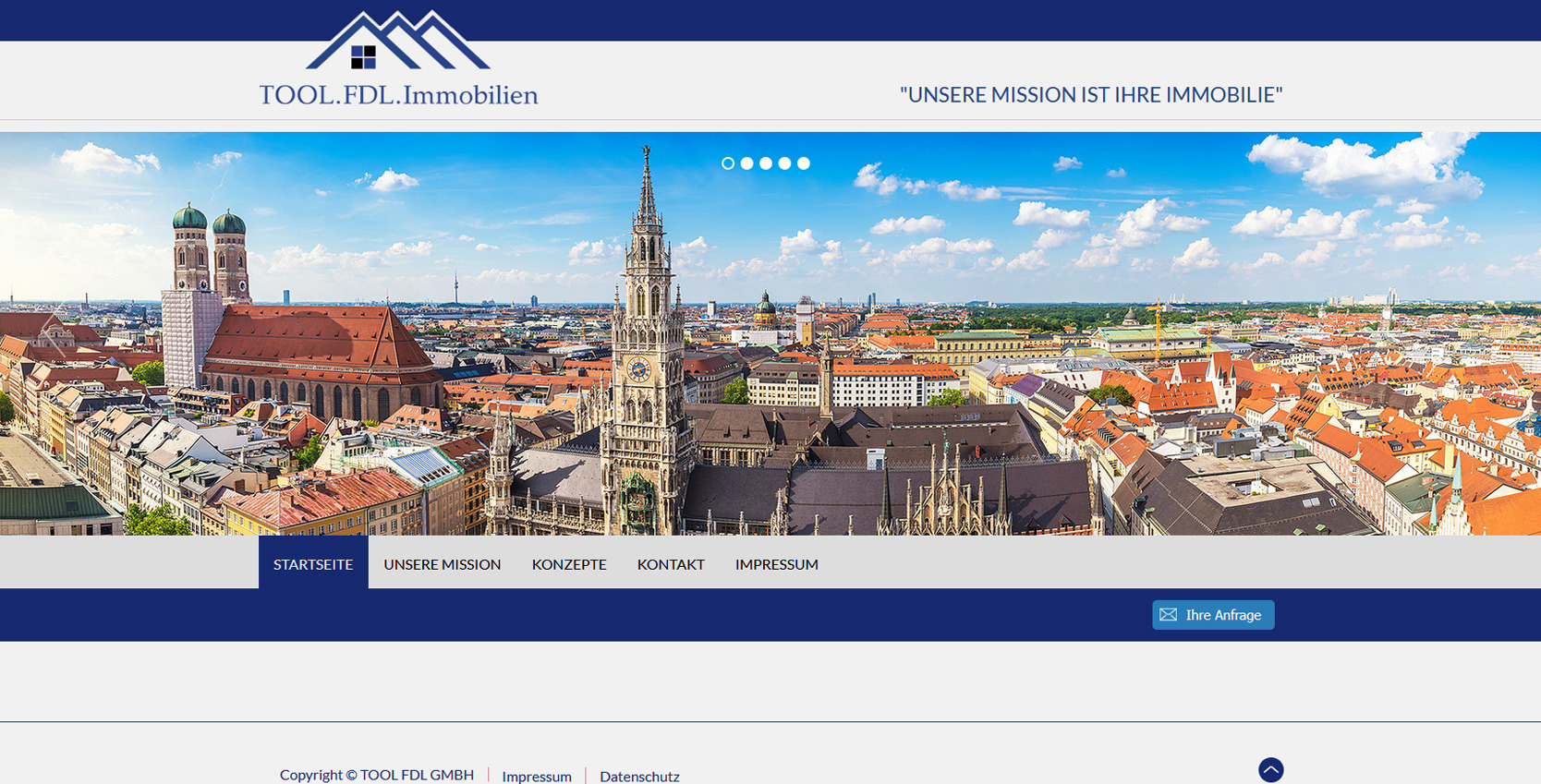 Tool FDL Immobilien ist ein regional tätiges Immobilienunternehmen mit Sitz in Grasbrunn. Das Unternehmen begleitet Eigentümer und Interessenten beim Verkauf, bei der Vermietung und Bewertung von Wohn- und Gewerbeimmobilien. Der Fokus liegt auf persönlicher Beratung, Marktkenntnis und einer transparenten Abwicklung.Die neue Website präsentiert Tool FDL Immobilien klar, sachlich und benutzerfreundlich. Besucher finden Informationen zu Leistungen, Immobilienangeboten und Ansprechpartnern. Ziel war es, Vertrauen aufzubauen, die regionale Kompetenz hervorzuheben und eine einfache Kontaktaufnahme zu ermöglichen. Das Design ist reduziert, modern und strukturiert aufgebaut. Klare Texte, übersichtliche Inhalte und eine mobil optimierte Darstellung sorgen für ein professionelles Nutzererlebnis auf allen Geräten.