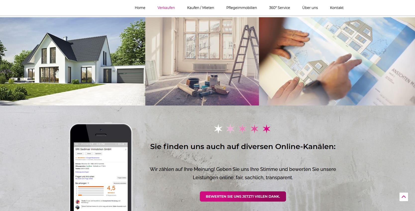 SRI Immobilien ist ein erfahrenes Maklerunternehmen mit Sitz in Karlsfeld, das sich auf den Verkauf, die Vermietung und Bewertung von Wohnimmobilien spezialisiert hat. Das Team steht für persönliche Beratung, Marktkenntnis und eine transparente, professionelle Abwicklung - von der ersten Besichtigung bis zum Vertragsabschluss.Die neue Website präsentiert SRI Immobilien als modernen, vertrauenswürdigen Partner für Eigentümer und Kaufinteressenten. Besucher finden aktuelle Immobilienangebote, Informationen zu Leistungen, Wertermittlung und Verkaufsservice. Ziel war es, die regionale Kompetenz und Seriosität des Unternehmens digital sichtbar zu machen und gleichzeitig ein benutzerfreundliches Online-Erlebnis zu schaffen. Das Design ist klar, elegant und auf Übersichtlichkeit ausgerichtet. Großformatige Objektbilder, klare Texte und eine intuitive Navigation sorgen für einen professionellen Auftritt. Die Seite ist vollständig mobil optimiert und bietet kurze Ladezeiten sowie eine strukturierte SEO-Architektur.