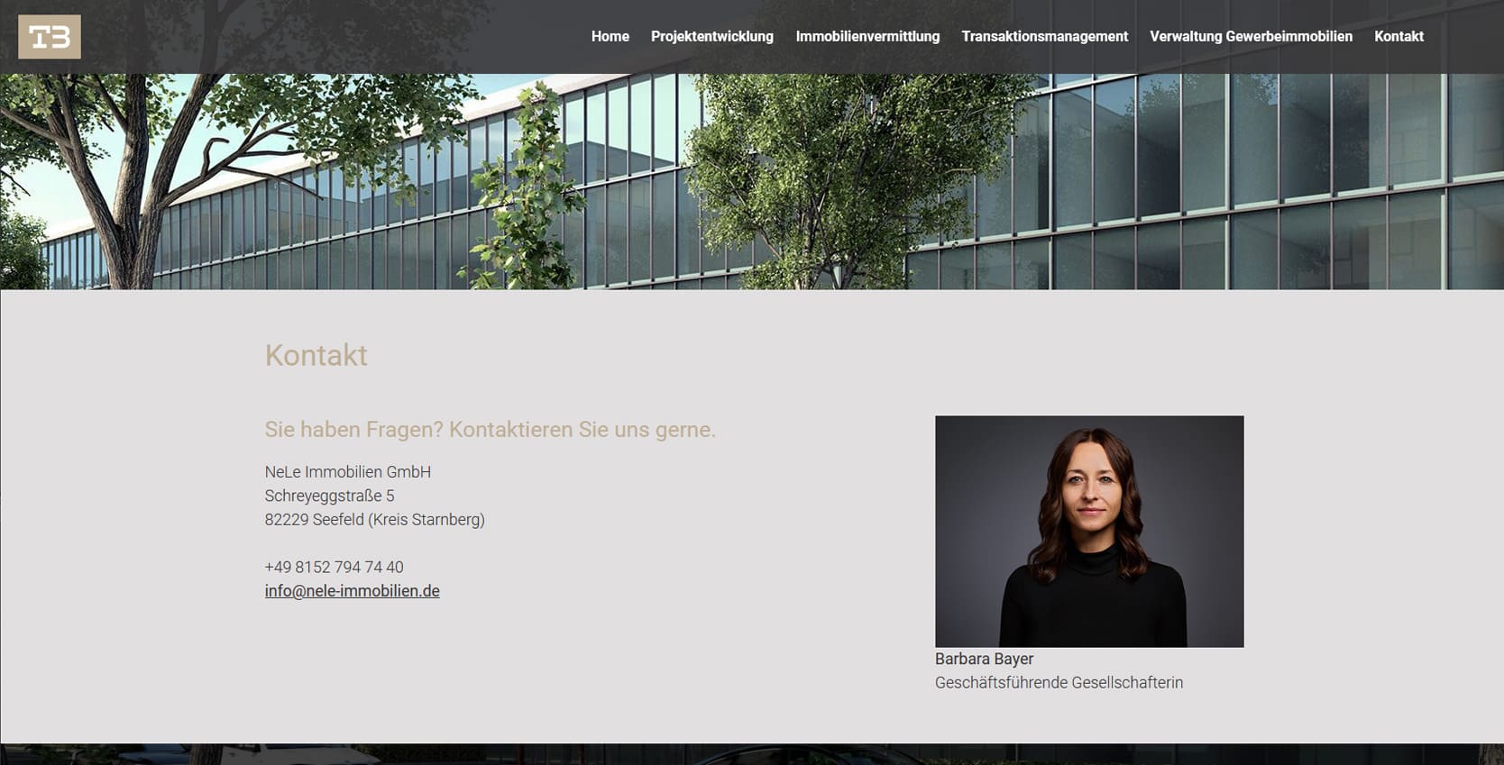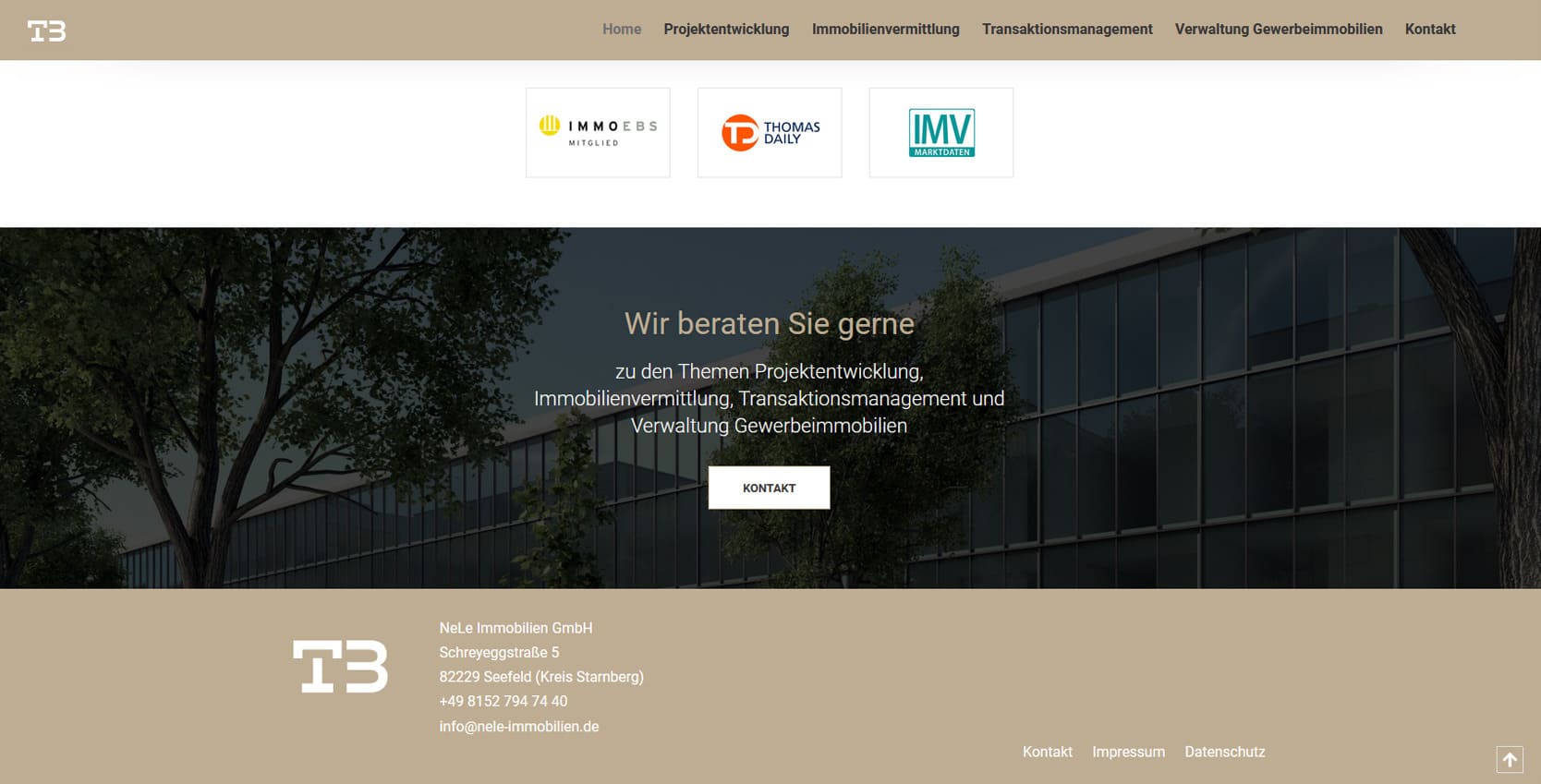 Nele Immobilien ist ein inhabergeführtes Maklerunternehmen aus Seefeld am Ammersee, das auf hochwertige Wohn- und Gewerbeimmobilien spezialisiert ist. Mit Leidenschaft, Fachwissen und Gespür für Menschen begleitet das Team von der ersten Beratung bis zum erfolgreichen Vertragsabschluss - stets mit Fokus auf Transparenz, Vertrauen und nachhaltige Werte.Die neue Website zeigt Nele Immobilien als moderne, serviceorientierte Immobilienagentur. Besucher finden aktuelle Objekte, Informationen zu Kauf und Verkauf sowie zu individuellen Leistungen rund um Immobilienbewertung und Vermarktung. Ziel war es, die persönliche Arbeitsweise und regionale Expertise digital sichtbar zu machen und Interessenten eine einfache Möglichkeit zur Kontaktaufnahme zu bieten. Das Design verbindet Eleganz mit Funktionalität: klare Strukturen, großformatige Objektbilder und eine intuitive Navigation sorgen für ein hochwertiges Erscheinungsbild. Die Seite ist vollständig mobil optimiert und technisch auf schnelle Ladezeiten ausgelegt - ideal für Interessenten, die unterwegs nach Immobilien suchen.