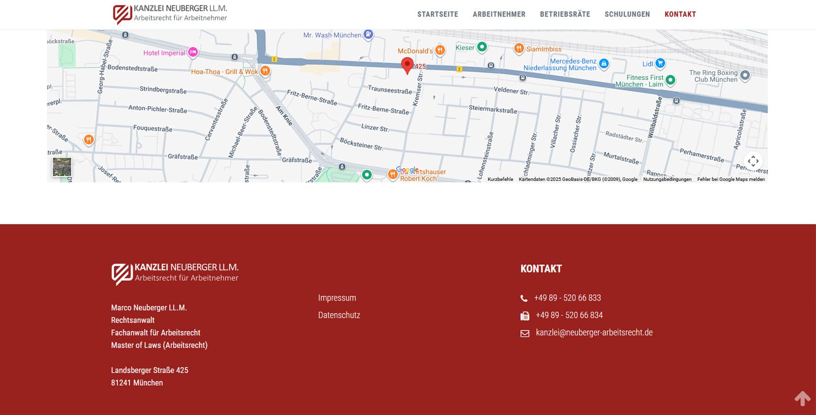 Die Kanzlei Neuberger ist eine auf Arbeitnehmerrechte spezialisierte Fachkanzlei für Arbeitsrecht in München. Rechtsanwalt Marco Neuberger LL.M. vertritt seit vielen Jahren ausschließlich Arbeitnehmerinnen, Arbeitnehmer und Betriebsräte mit höchster juristischer Expertise und großem persönlichen Engagement.Die neue Website vermittelt diesen Anspruch durch eine klare, seriöse Gestaltung und präzise Struktur. Besucher finden alle wichtigen Informationen zu den Schwerpunkten der Kanzlei - von Kündigungsschutzverfahren und Aufhebungsverhandlungen bis hin zu Schulungen für Betriebsräte. Ziel war es, die juristische Kompetenz und die menschliche Haltung der Kanzlei digital sichtbar zu machen: engagiert, loyal und kämpferisch für die Rechte der arbeitenden Menschen. Ergänzt wird der Auftritt durch Testimonials, Schulungsangebote und einen umfassenden Einblick in die Vita von Marco Neuberger. Das responsive Design sorgt für optimale Nutzung auf allen Endgeräten, während die SEO-Struktur auf Suchanfragen rund um Arbeitsrecht in München ausgerichtet ist.
