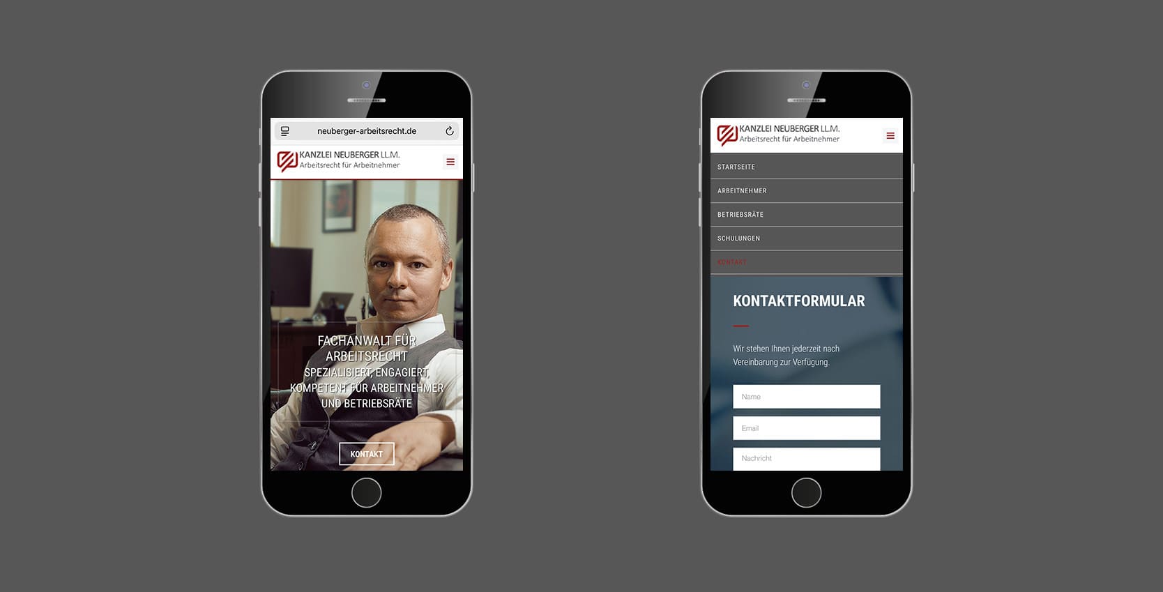 - Modernes, seriöses Webdesign mit klarem Fokus auf Arbeitsrecht