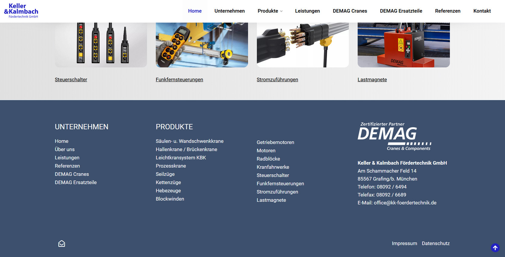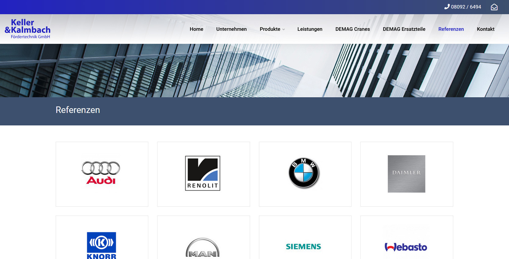 KK Fördertechnik ist ein spezialisierter Anbieter für Krananlagen, Hebetechnik und individuelle Förderlösungen mit Sitz in München. Das Unternehmen plant, fertigt und betreut Kran- und Fördersysteme für Industrie, Handwerk und Gewerbe. Der Fokus liegt auf Sicherheit, technischer Präzision und zuverlässiger Umsetzung im laufenden Betrieb.Die neue Website präsentiert KK Fördertechnik klar, technisch und übersichtlich. Besucher finden Informationen zu Krananlagen, Sonderlösungen, Serviceleistungen und Prüfungen. Ziel war es, die technische Kompetenz und langjährige Erfahrung digital sichtbar zu machen und Kunden eine schnelle Orientierung zu bieten. Das Design ist technisch geprägt, strukturiert und funktional aufgebaut. Klare Inhalte, aussagekräftige Bilder und eine mobil optimierte Darstellung sorgen für ein professionelles Nutzererlebnis für Planer, Einkäufer und Betreiber.
