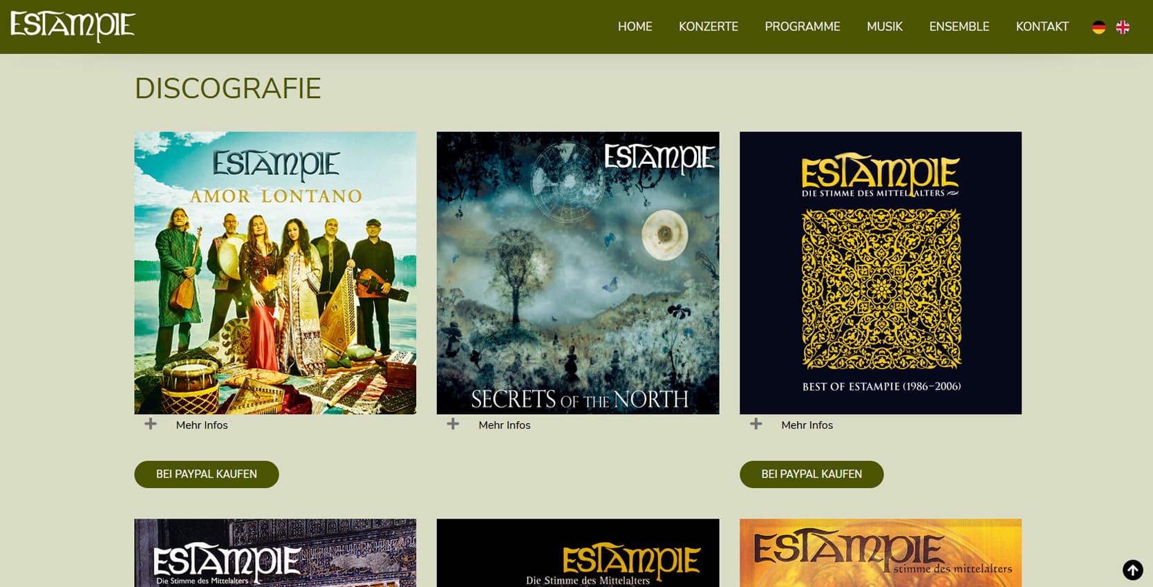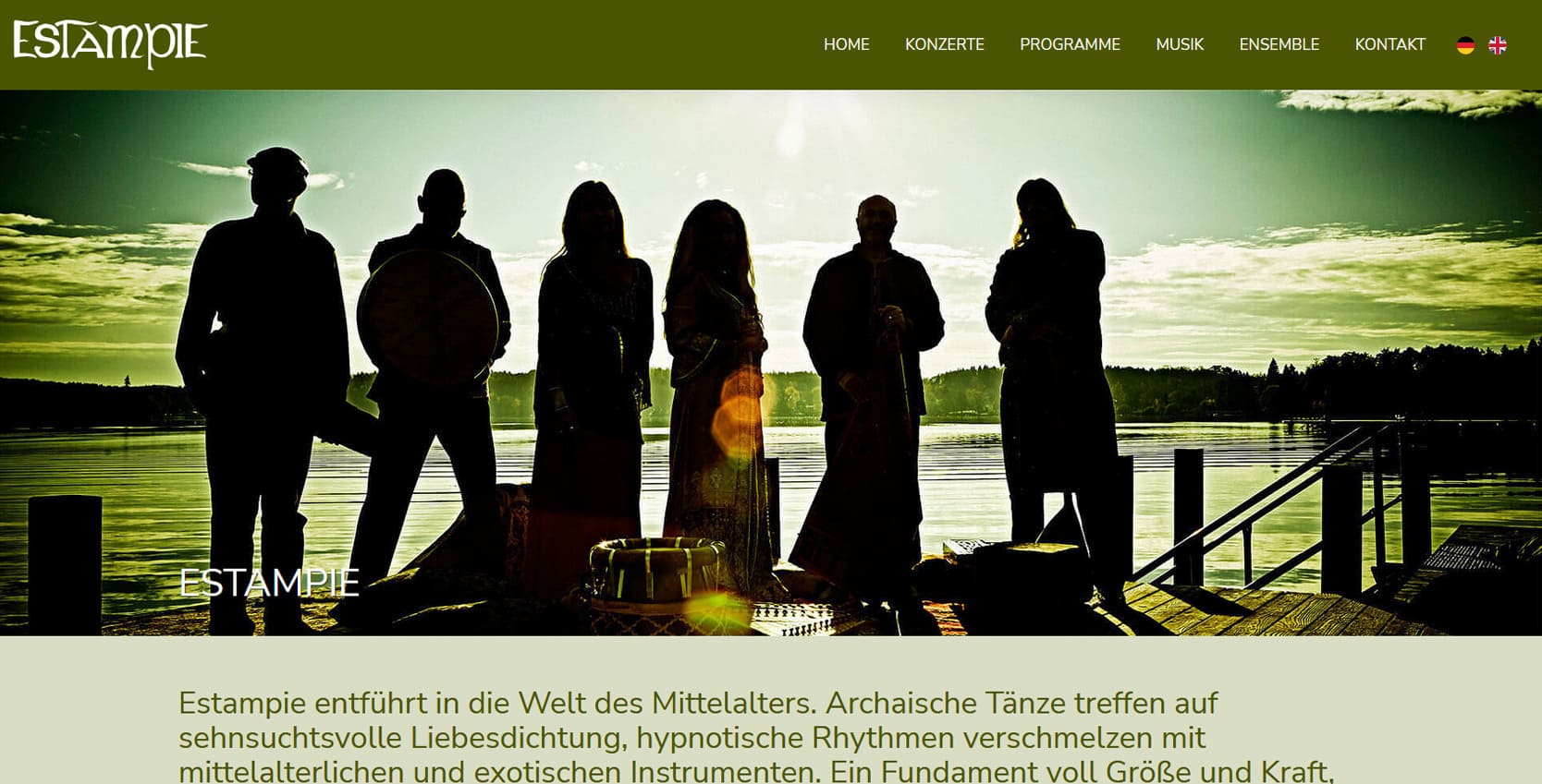 Estampie gehört zu den erfolgreichsten deutschen Ensembles für mittelalterliche Musik. Seit ihrer Gründung begeistert die Gruppe mit einer einzigartigen Verbindung aus historischen Instrumenten, authentischen Klängen und modernen Interpretationen. Internationale Konzerte, zahlreiche Alben und Projekte wie Qntal oder Al Andaluz machen Estampie zu einem festen Bestandteil der Kulturszene.Die neue Website stellt die Band, ihre Projekte und Konzerte in einem klaren, modernen Design dar. Besucher finden Biografien, Diskografie, aktuelle Termine sowie Einblicke in Side-Projekte der Musiker. Ziel war es, die künstlerische Vielfalt und die internationale Präsenz digital sichtbar zu machen.