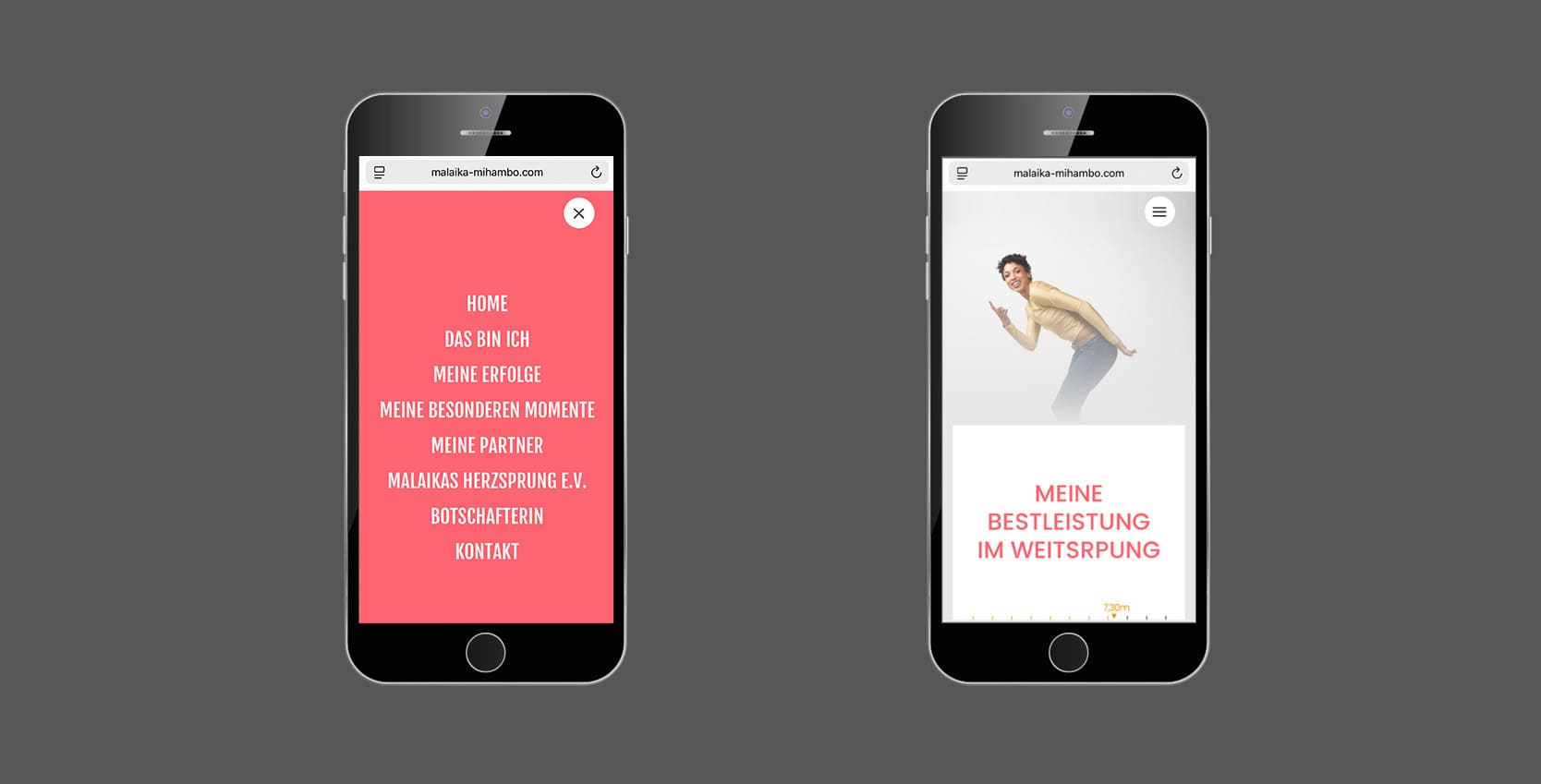Die Olympiasiegerin und Weltmeisterin im Weitsprung bekommt eine Bühne, die ihre Persönlichkeit, ihre Erfolge und ihr soziales Engagement widerspiegelt. Ziel war es, eine Website zu schaffen, die sportliche Dynamik mit Eleganz verbindet und gleichzeitig übersichtlich bleibt. Im Vordergrund stehen beeindruckende Bilder, klare Botschaften und ein Design, das die Strahlkraft von Malaika Mihambo transportiert. Die Website vereint sportliche Highlights mit persönlichen Einblicken und macht ihre Projekte - ob sportlich oder sozial - für Fans und Partner sichtbar.Besonderen Wert haben wir auf eine klare Struktur und kurze Ladezeiten gelegt. Besucher sollen schnell finden, was sie suchen - egal ob aktuelle Erfolge, Hintergrundinfos oder Möglichkeiten zur Zusammenarbeit. Dank des eingesetzten CMS lassen sich Inhalte jederzeit einfach aktualisieren. Die Seite ist selbstverständlich mobil optimiert. Gerade Fans, die unterwegs aktuelle Infos abrufen wollen, profitieren von der schnellen, responsiven Umsetzung. Ergänzt wird das Ganze durch Social-Media-Elemente, die den direkten Draht zu Malaikas Community stärken. So entsteht ein digitaler Auftritt, der sportliche Power, Eleganz und Persönlichkeit verbindet - genau wie Malaika selbst.