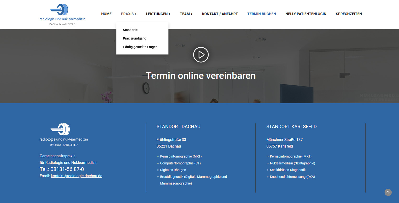 Die Radiologie Dachau ist eine moderne Fachpraxis für radiologische Diagnostik und bietet ein breites Spektrum an Untersuchungen wie MRT, CT, Röntgen und Ultraschall. Das Team steht für medizinische Kompetenz, moderne Technik und eine patientenorientierte Betreuung, die Vertrauen schafft und Abläufe für Patienten so angenehm wie möglich gestaltet.Die neue Website vermittelt diesen Anspruch durch eine klare, ruhige und professionelle Gestaltung. Besucher finden alle wichtigen Informationen zu Untersuchungen, Terminen, Vorbereitungshinweisen und zum Praxisablauf. Ziel war es, Orientierung zu schaffen, Barrieren abzubauen und Patienten schon online ein sicheres Gefühl zu geben. Das Design ist freundlich, strukturiert und barrierearm umgesetzt. Eine intuitive Navigation und mobil optimierte Darstellung sorgen dafür, dass Patienten schnell die passenden Informationen finden - egal ob am Desktop oder unterwegs auf dem Smartphone.