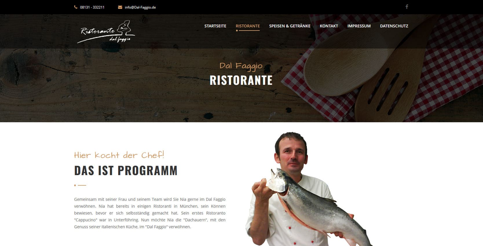 Das Ristorante Dal Faggio steht seit vielen Jahren für authentische italienische Küche im Herzen von Dachau. Mit Leidenschaft, mediterranem Flair und einem herzlichen Service schafft das Team um Nia einen Ort zum Genießen und Wohlfühlen. Die neue Website überträgt dieses Ambiente digital und lädt Gäste ein, schon vor dem Besuch in die Welt des Dal Faggio einzutauchen.Die Seite präsentiert das Restaurant, die Speisen und Getränke, Öffnungszeiten sowie Kontakt- und Reservierungsmöglichkeiten in einem klaren, eleganten Design. Ziel war es, die Atmosphäre des Hauses - traditionell, herzlich und hochwertig - visuell einzufangen und gleichzeitig alle wichtigen Informationen schnell zugänglich zu machen. Dank responsivem Design und strukturierter Navigation finden Besucher die Speisekarte oder Kontaktdaten auch unterwegs bequem auf dem Smartphone. Zudem bietet die Website Raum für zukünftige Aktionen und News, etwa bei Wiedereröffnung nach Umbau oder saisonalen Angeboten.