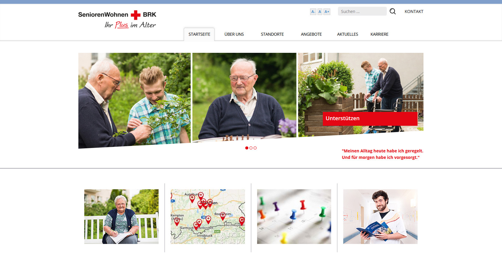 BRK Seniorenwohnen bietet älteren Menschen ein sicheres, geborgenes und selbstbestimmtes Zuhause. An verschiedenen Standorten in München vereinen die Einrichtungen professionelle Pflege, soziale Betreuung und ein lebendiges Gemeinschaftsangebot. Die Website soll diese Werte transportieren und Angehörigen wie Bewohnern eine verlässliche Informationsquelle bieten.Die neue Website präsentiert die Häuser übersichtlich und modern, mit klar strukturierten Informationen zu Pflegeangeboten, Wohnformen, Alltag, Serviceleistungen und Ansprechpartnern. Ziel war es, Orientierung zu schaffen und gleichzeitig die warme, menschliche Atmosphäre der Einrichtungen sichtbar zu machen. Das Design ist freundlich, barrierearm und nutzerorientiert aufgebaut. Großformatige Bilder, klare Navigation und eine mobil optimierte Darstellung erleichtern Nutzern jeden Alters den Zugang zu den wichtigsten Informationen - von der Pflegeplatzsuche bis zu Kontaktbereichen.
