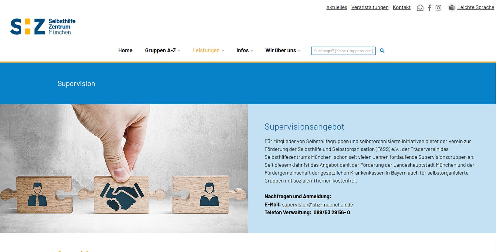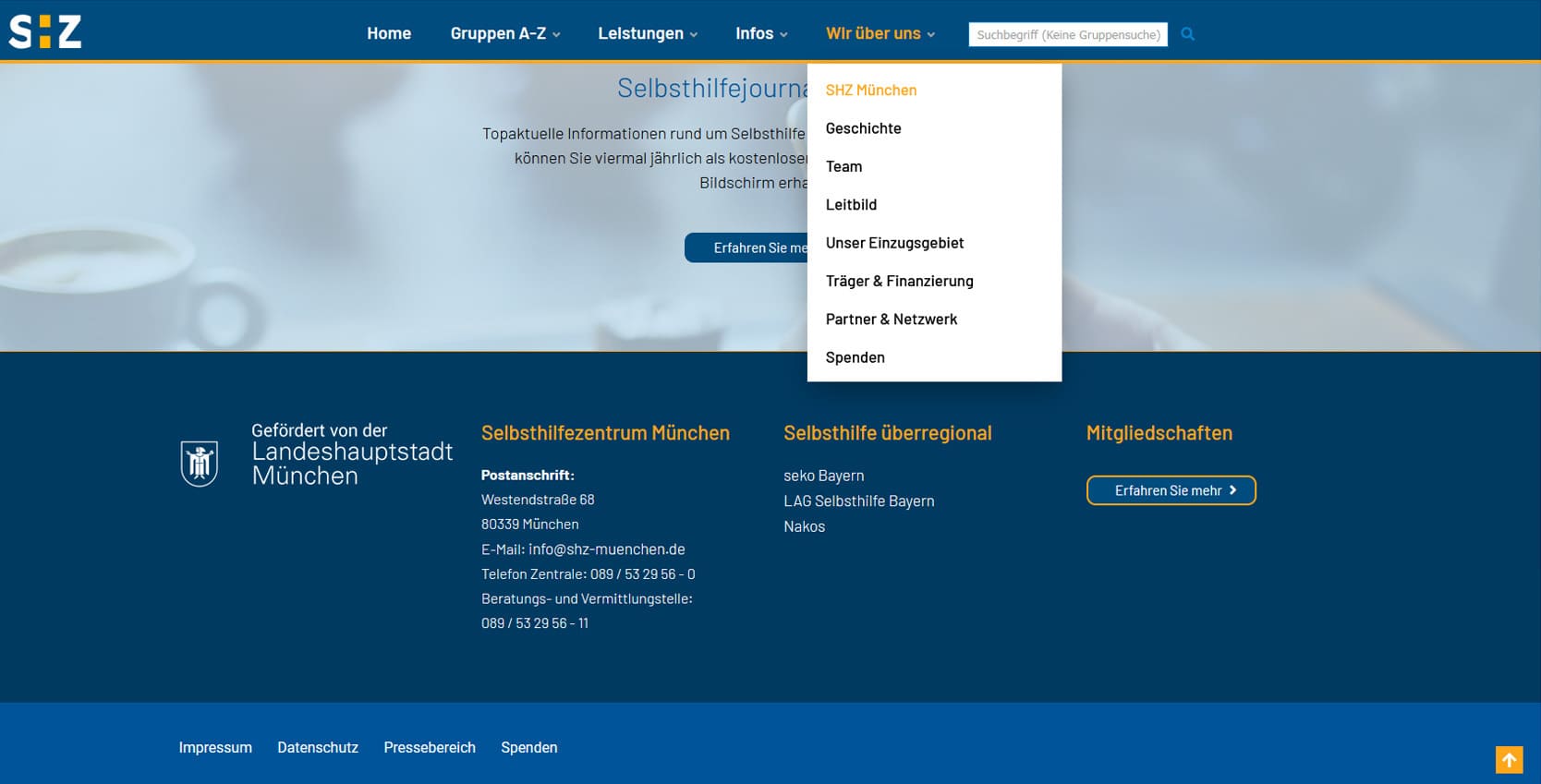 Das Selbsthilfezentrum München (SHZ) ist seit über 30 Jahren die zentrale Anlaufstelle für Selbsthilfe, Bürgerengagement und soziale Initiativen in München. Über 1.600 Gruppen und Initiativen sind hier vernetzt, unterstützt und begleitet - von gesundheitlichen Selbsthilfegruppen bis hin zu sozialen, psychologischen und kulturellen Projekten.Die neue Website wurde als umfangreiche Informations- und Serviceplattform konzipiert. Sie bietet neben einer interaktiven Gruppensuche auch digitale Werkzeuge für Organisationen, virtuelle Räume, Fortbildungsangebote und Beratungsinformationen. Ziel war es, den Austausch zwischen Bürgern, Initiativen und Fachstellen zu fördern und gleichzeitig den Zugang zu Selbsthilfeangeboten barrierearm zu gestalten. Besonderer Wert wurde auf Übersichtlichkeit und Zugänglichkeit gelegt: Inhalte in Leichter Sprache, Gebärdensprache und eine strukturierte Navigation ermöglichen es allen Nutzergruppen, schnell die passenden Informationen zu finden. So wird das SHZ München zu einem digitalen Zentrum für Selbsthilfe, Begegnung und Teilhabe.