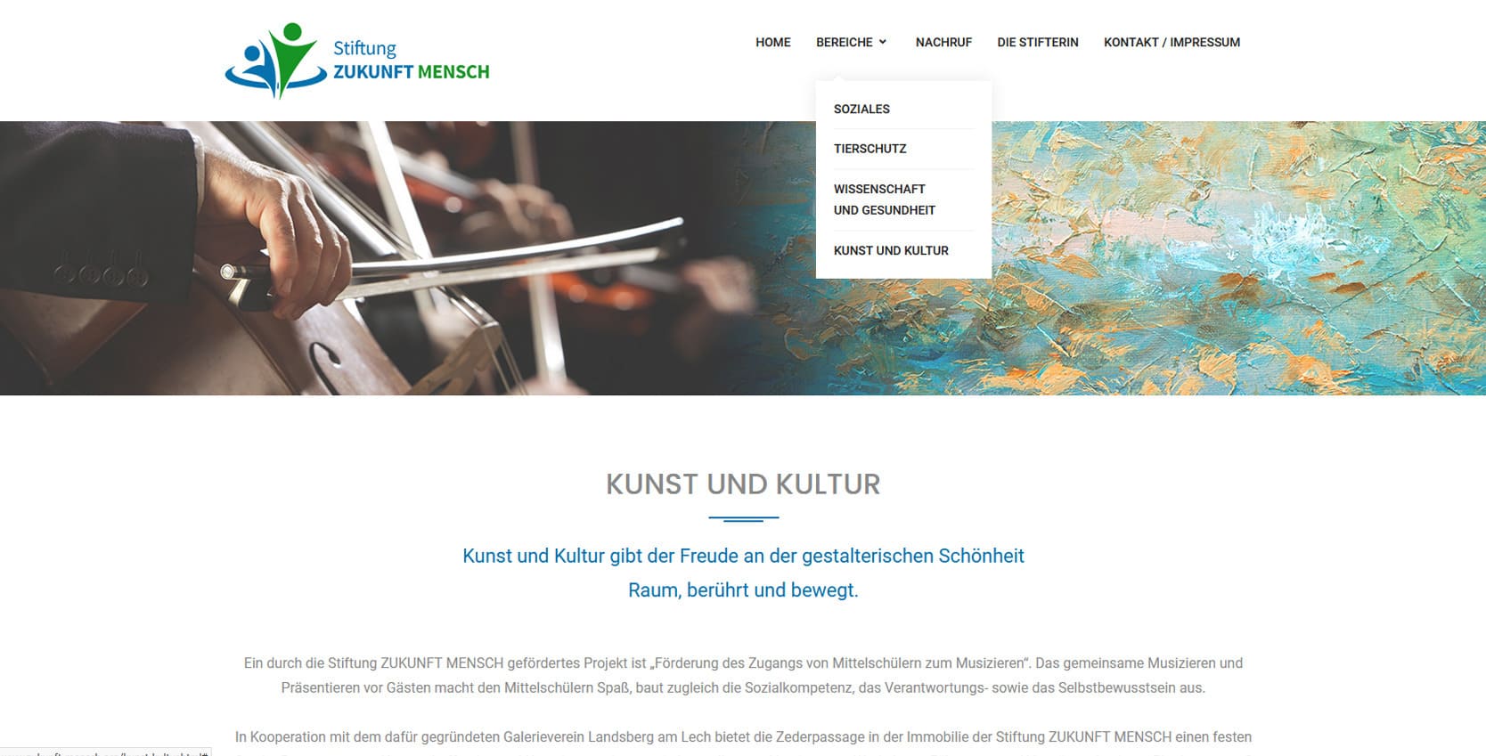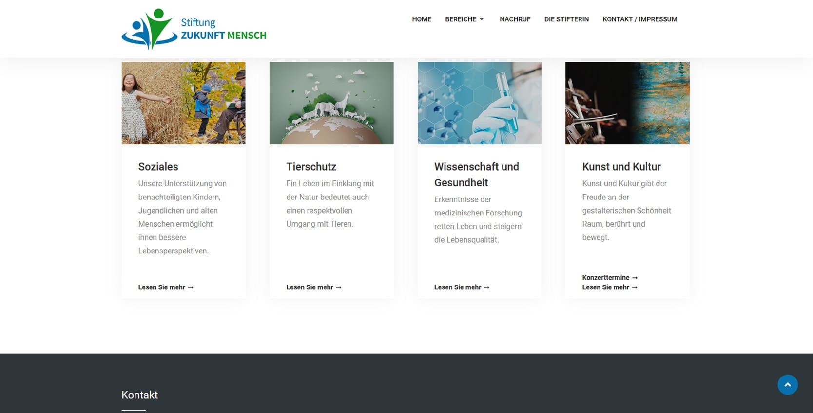 Die Stiftung Zukunft Mensch engagiert sich für Bildung, soziale Teilhabe und nachhaltige Entwicklung. Sie fördert Projekte, die Menschen befähigen, ihre Zukunft aktiv zu gestalten - in Deutschland und weltweit. Im Fokus stehen Themen wie Chancengleichheit, ökologische Verantwortung und gesellschaftlicher Zusammenhalt.Die neue Website präsentiert die Stiftung mit einem modernen, vertrauensvollen Auftritt. Besucher finden Informationen zu Förderprojekten, Themenfeldern und Mitwirkungsmöglichkeiten. Ziel war es, die Werte der Stiftung - Transparenz, Verantwortung und Zukunftsorientierung - digital sichtbar zu machen und gleichzeitig den Zugang zu Förderinformationen und Spenden zu erleichtern. Das Design ist freundlich, klar und bildstark gestaltet. Großflächige Fotos, übersichtliche Strukturen und eine mobil optimierte Darstellung schaffen ein offenes, positives Nutzererlebnis.