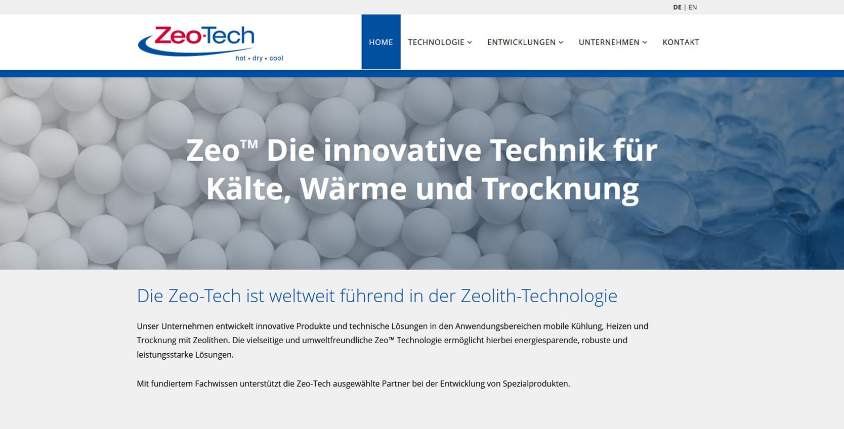 ZEOtech ist ein innovatives Technologieunternehmen aus Unterschleißheim, das sich auf die Entwicklung und Produktion hochwertiger Zeolith-Systeme spezialisiert hat. Die Lösungen des Unternehmens kommen in Industrie, Energie- und Umwelttechnik zum Einsatz und tragen zur effizienten Nutzung von Ressourcen sowie zur Reduzierung von Emissionen bei.Die neue Website präsentiert ZEOtech als modernen Technologieführer mit internationaler Ausrichtung. Besucher finden Informationen zu Produkten, Anwendungen, Forschungspartnerschaften und zur Unternehmensphilosophie. Ziel war es, die komplexen Inhalte technisch präzise, aber leicht verständlich darzustellen und die Innovationskraft des Unternehmens digital sichtbar zu machen. Das Design ist technisch klar, reduziert und auf Informationsstruktur ausgelegt. Durch großflächige Grafiken, dezente Animationen und ein responsives Layout entsteht ein professionelles und zukunftsorientiertes Erscheinungsbild.